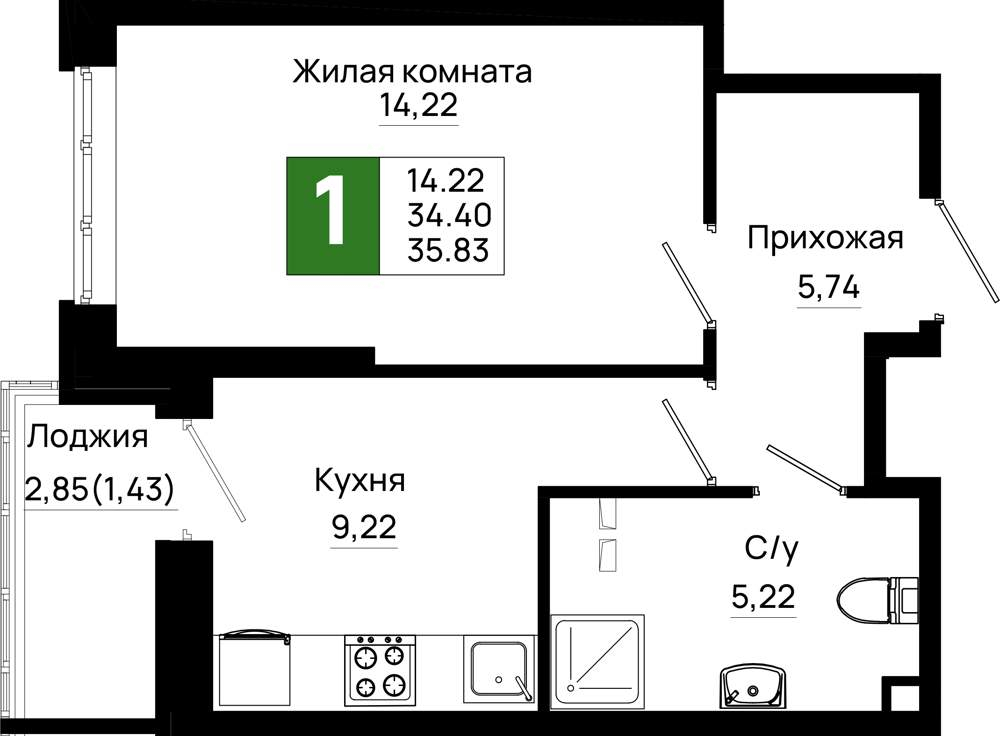 Продажа квартиры в новостройке в Ростове-на-Дону 30-40 кв.м.