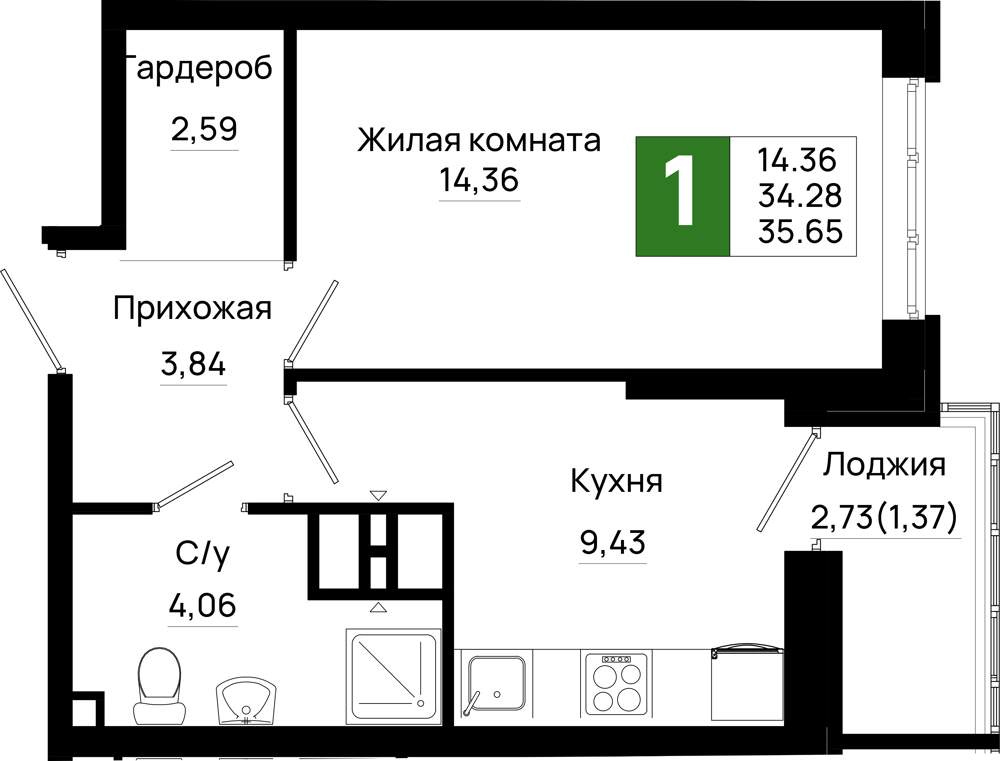 35.6 м2