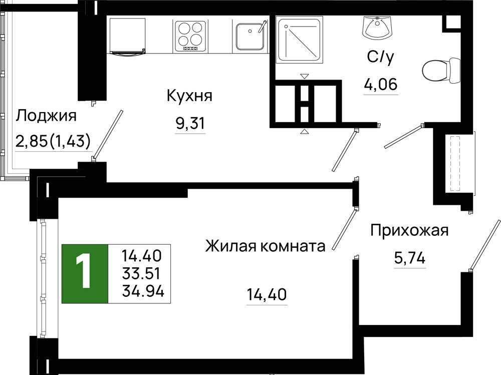 34.9 м2
