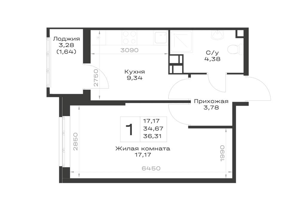 34.3 м2