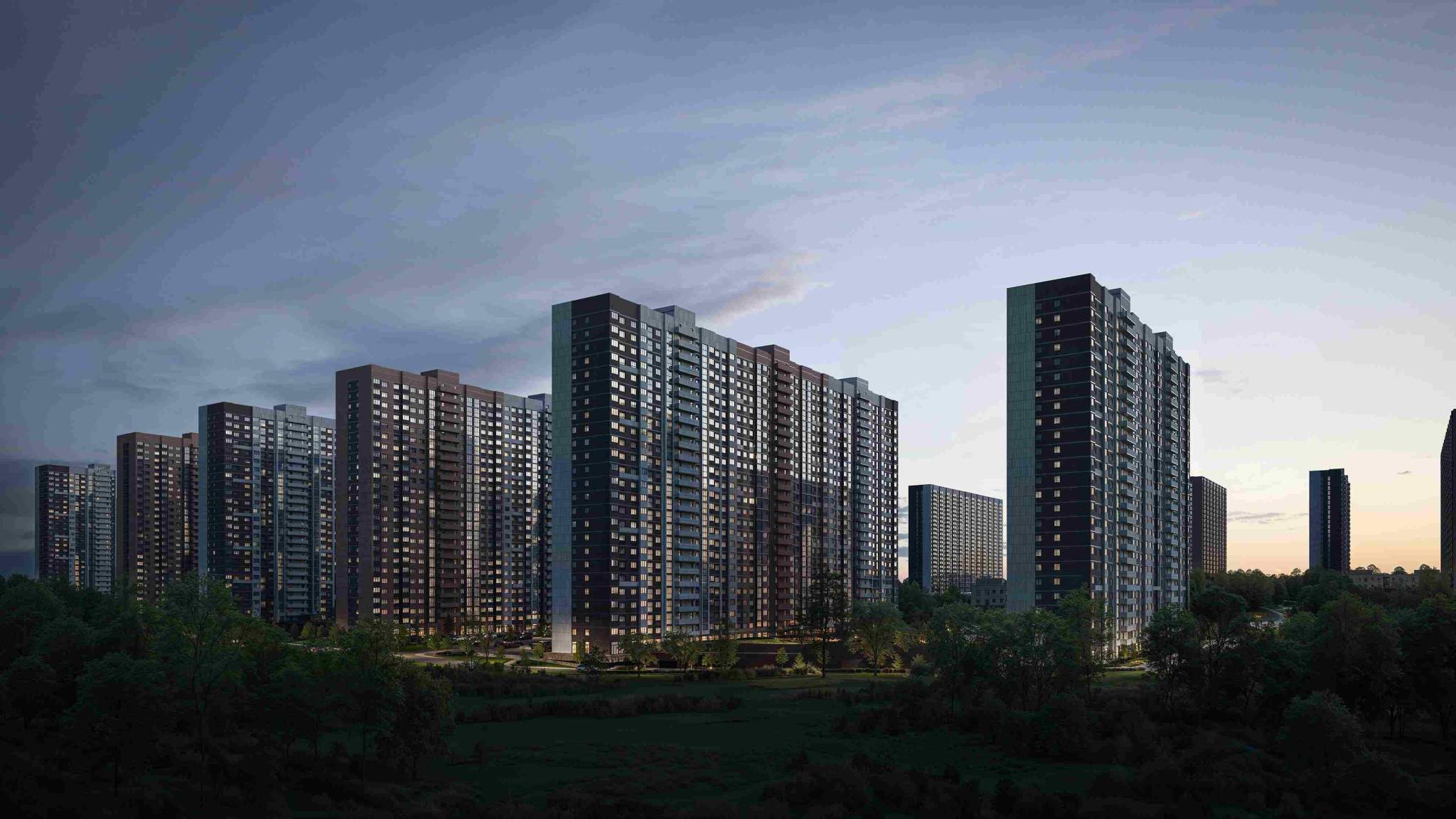 Квартира располагается на 21 этаже 25-этажного дома в ЖК Октябрь Парк.