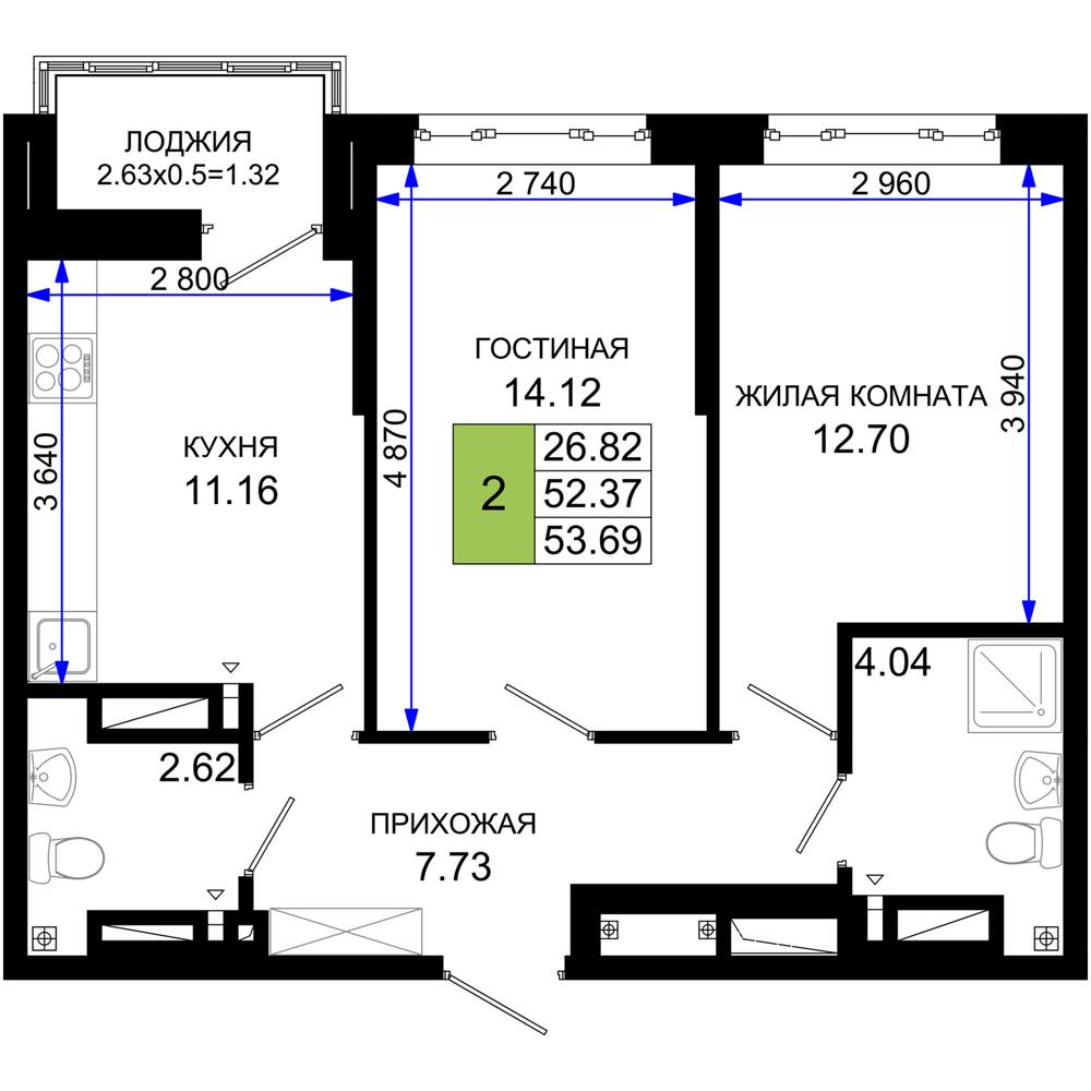 Продажа двухкомнатной квартиры в новостройке в Ростове-на-Дону от собственника