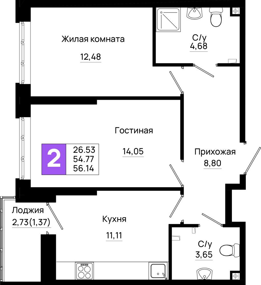 55 м2