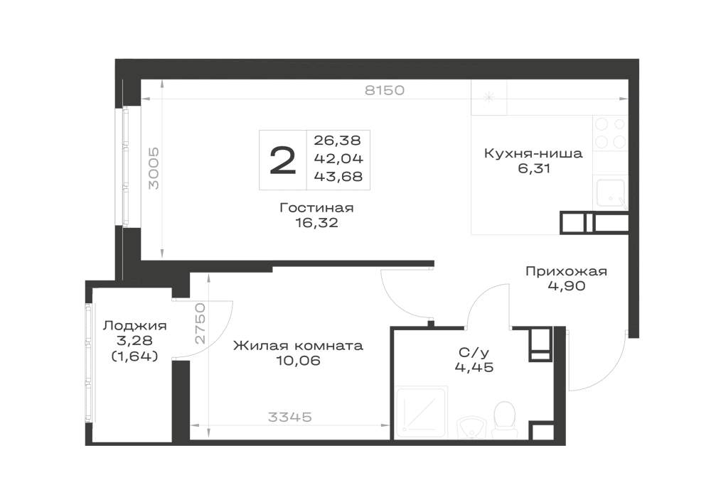 Жилая площадь 17.43 м2, кухня 10.01 м2, предчистовая отделка, комнаты изолированные.
