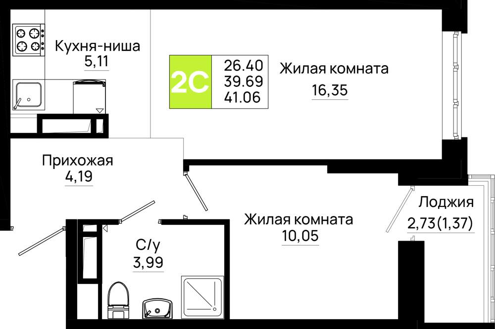 Продажа однокомнатной квартиры в новостройке в Ростове-на-Дону 41-50 кв.м.
