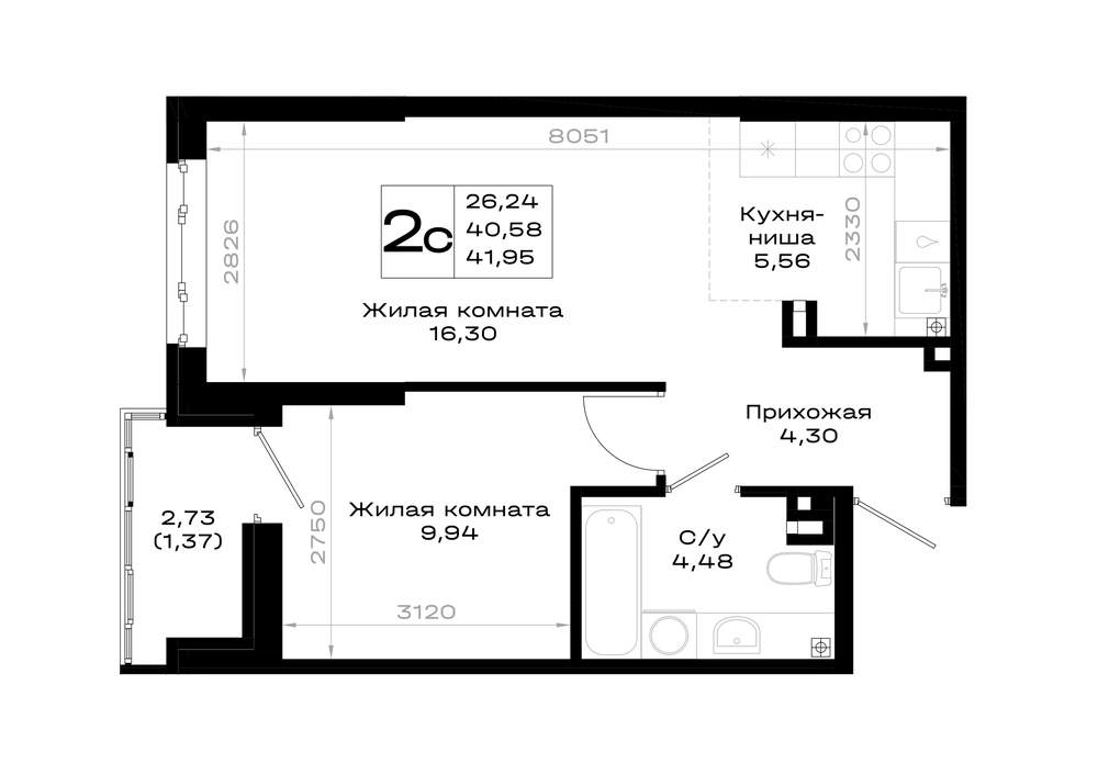 Продажа однокомнатной квартиры в новостройке в Ростове-на-Дону 41-50 кв.м.
