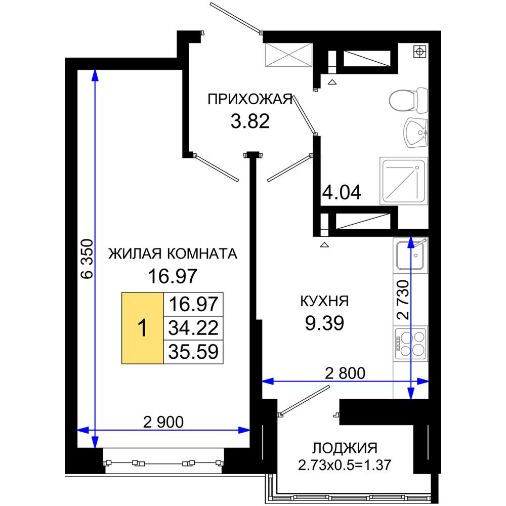 34.9 м2