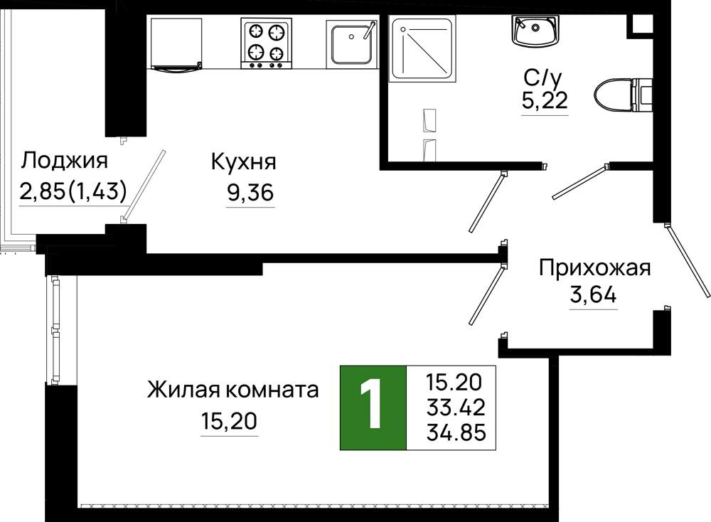34.9 м2