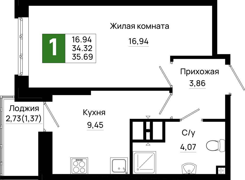 34.9 м2