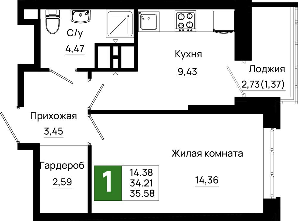 35 м2