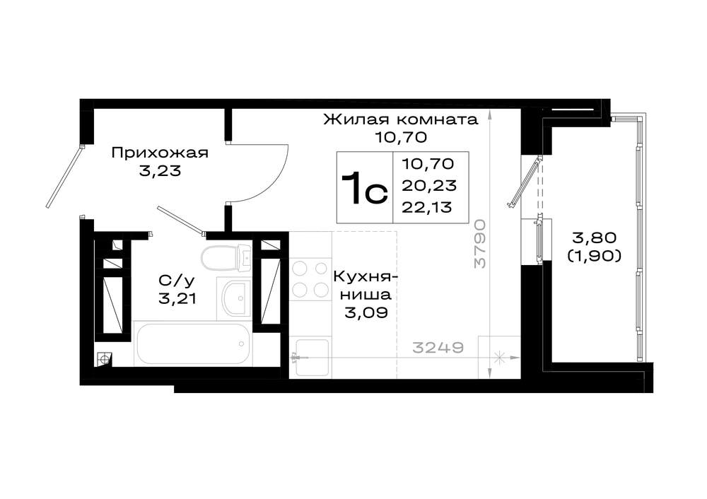 Продам квартиру-студию в новостройке 22.1 м.кв.