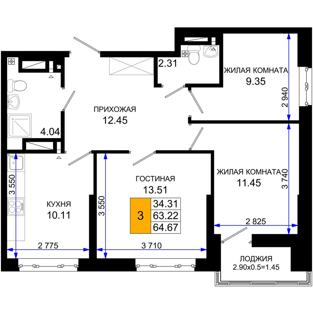 Продается 3-комн. квартира, площадью 64.54 м2 в монолитно-кирпичной новостройке. Возможен вариант покупки с использованием ипотечных средств, есть рассрочка, возможна покупка с использованием материнского капитала, есть военная ипотека.