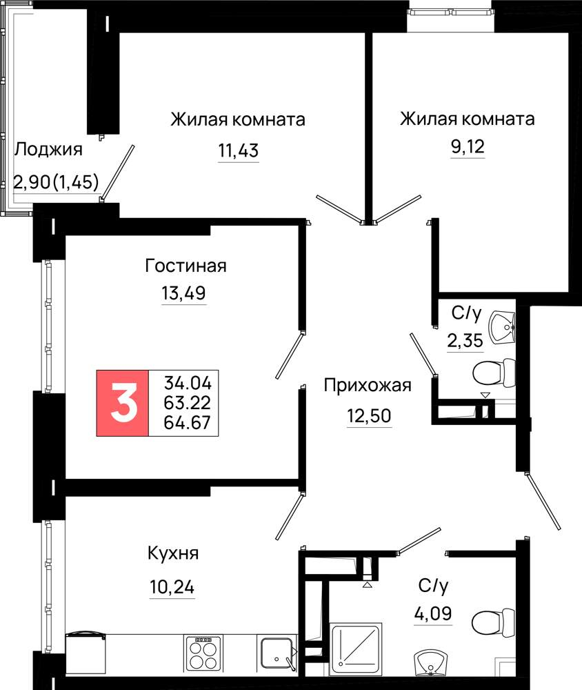 Продажа трехкомнатной квартиры в новостройке в Ростове-на-Дону от собственника