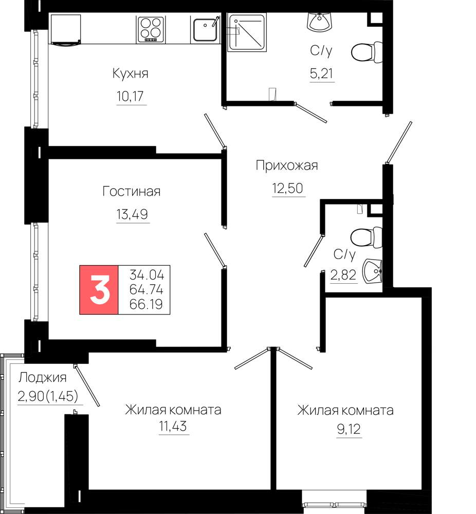 Продажа трехкомнатной квартиры в новостройке в Ростове-на-Дону от собственника