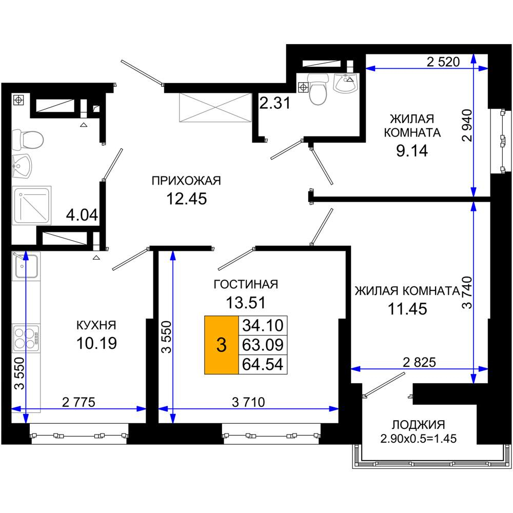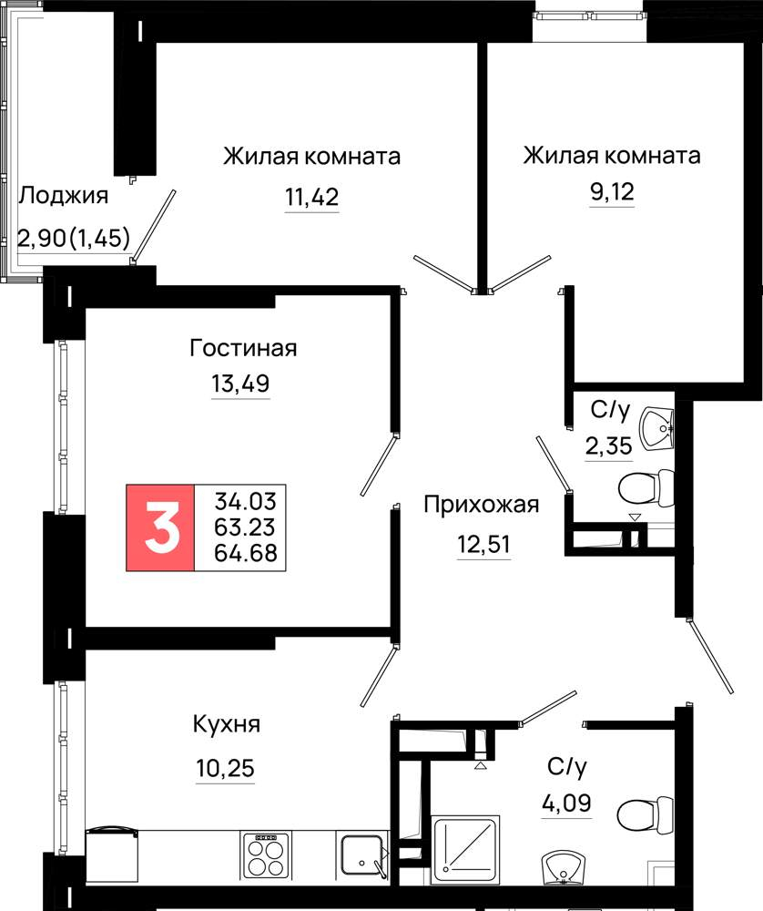 Продажа трехкомнатной квартиры в новостройке в Ростове-на-Дону от собственника