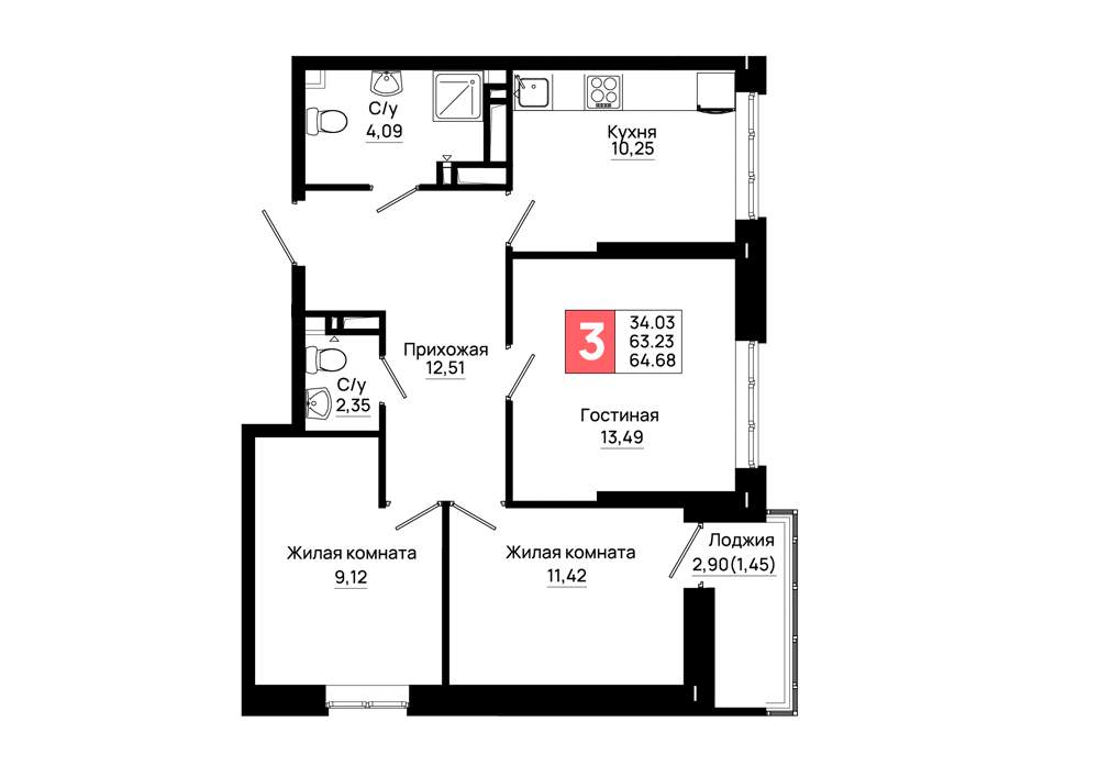Продажа трехкомнатной квартиры в новостройке в Ростове-на-Дону от собственника