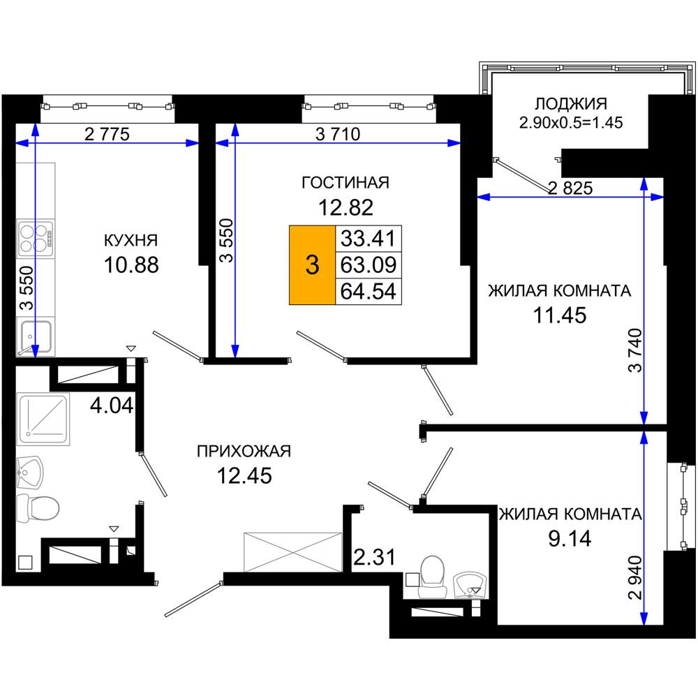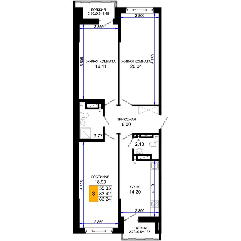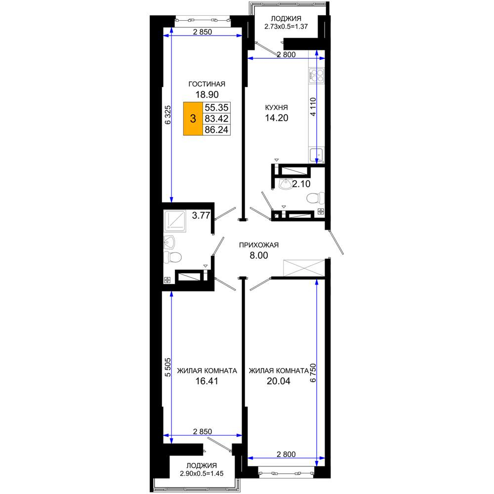 Продажа трехкомнатной квартиры в новостройке в Ростове-на-Дону от собственника