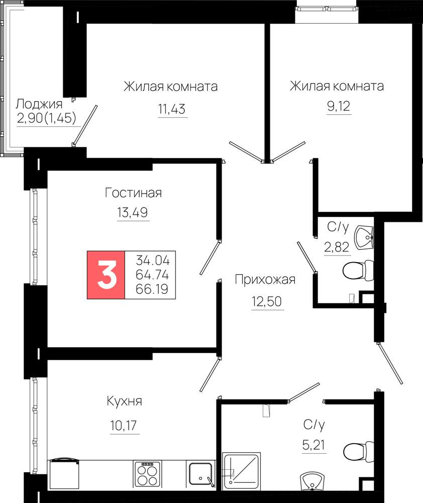 Продажа трехкомнатной квартиры в новостройке в Ростове-на-Дону от собственника