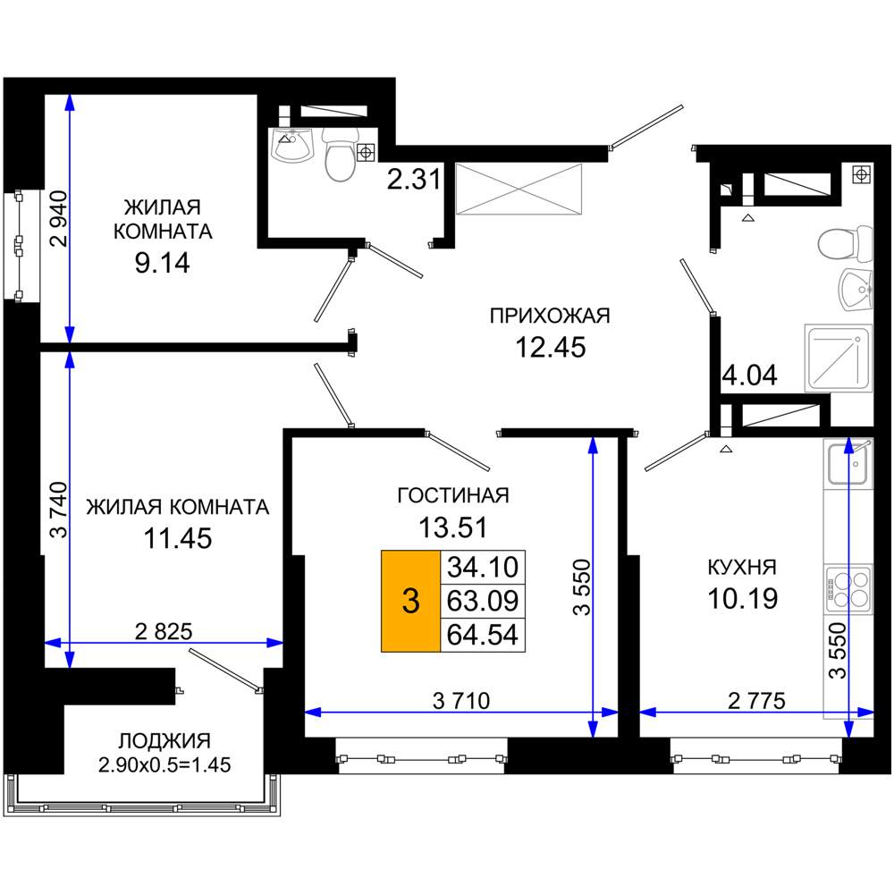 Продажа трехкомнатной квартиры в новостройке в Ростове-на-Дону от собственника