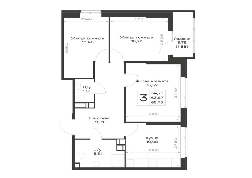 Продажа трехкомнатной квартиры в новостройке в Ростове-на-Дону 51-100 кв.м.