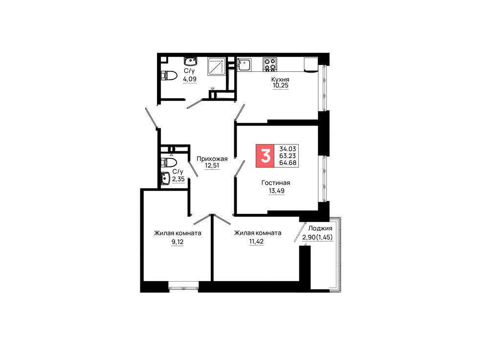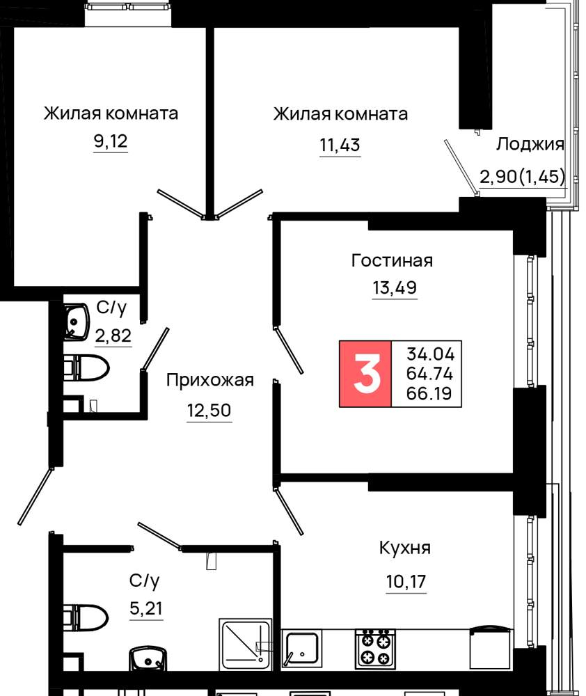 Продажа трехкомнатной квартиры в новостройке в Ростове-на-Дону 51-100 кв.м.