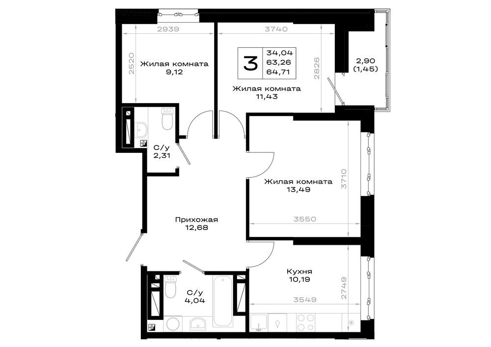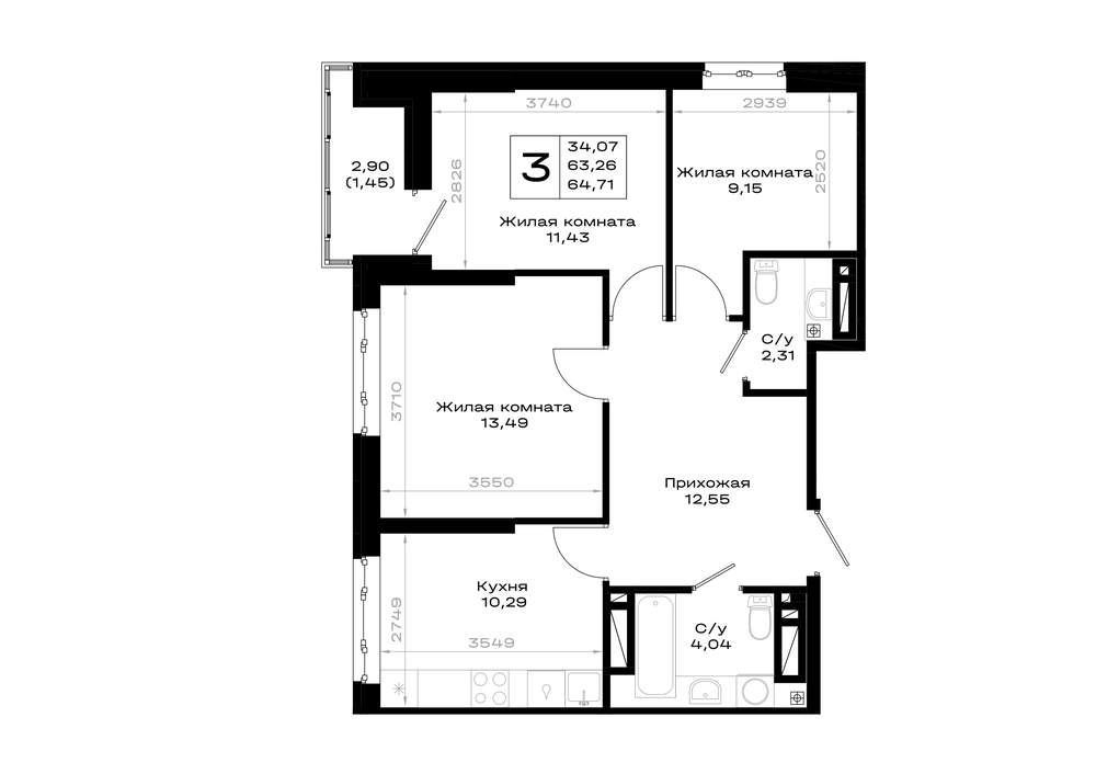 64.5 м2