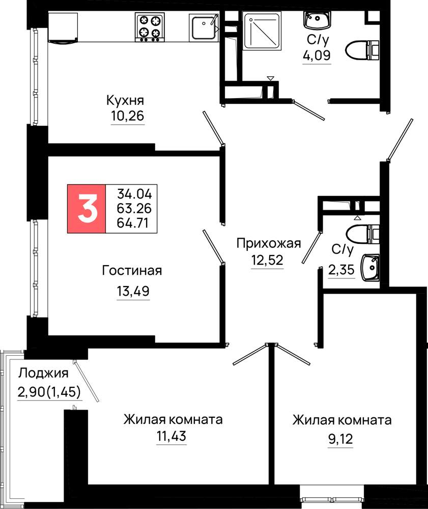 Продажа трехкомнатных квартир в новостройках в Ростове-на-Дону