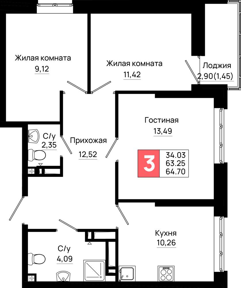 64.5 м2