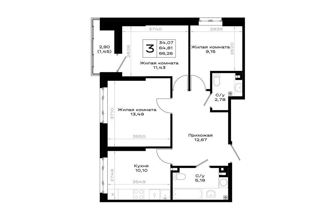 66.3 м2